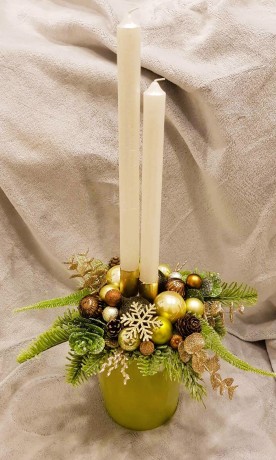 Vianoce- Aranžmány v košíku, vedierku, črepníku