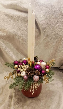 Vianoce- Aranžmány v košíku, vedierku, črepníku