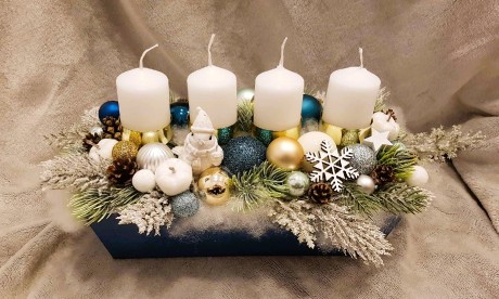 Vianoce- Aranžmány v košíku, vedierku, črepníku